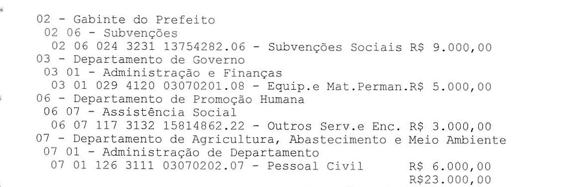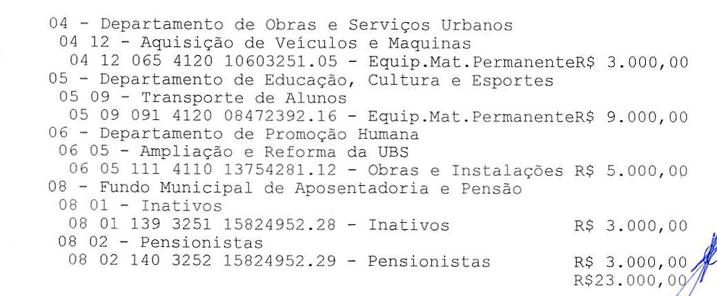 A suplementação de que se trata o artigo anterior é proveniente da anulação parcial das seguintes dotações orçamentarias: