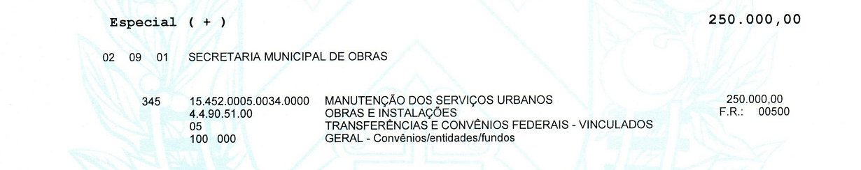 O Poder Executivo Municipal fica autorizado a abrir no orçamento - programa do exercício de 2022, nos termos do inciso II do art. 41 da Lei 4.320/64 Crédito Adicional Especial, no valor de R$ 250.000,00 (duzentos e cinqüenta mil reais) para criação da seguinte dotação orçamentária: