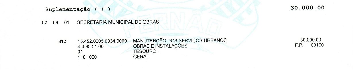 mil reais) para suplementação das seguintes dotações orçamentárias: