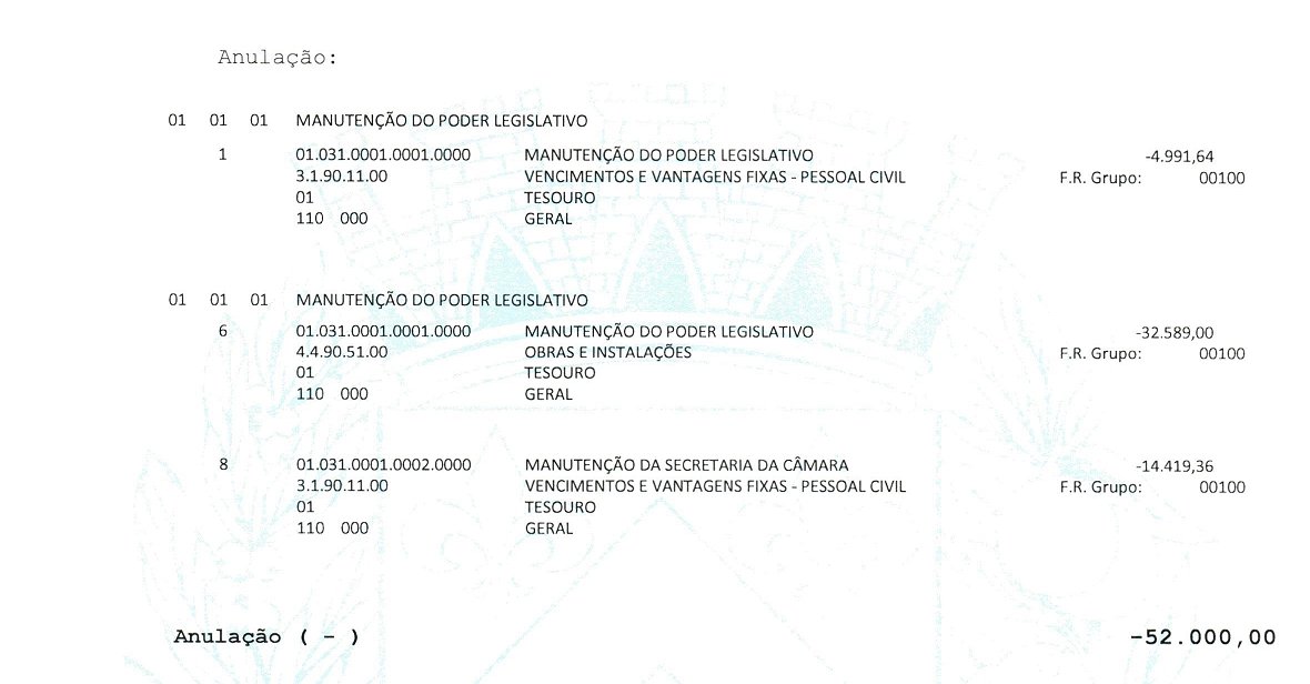 Para cobertura do Crédito Adicional Suplementar aberto pelo artigo 1° será utilizado recursos provenientes de ANULAÇÃO PARCIAL, nos termos do inciso III do§ 1° do art. 43 da Lei Federal 4.320/64, no valor de R$ 52.000,00 (cinqüenta e dois mil reais):