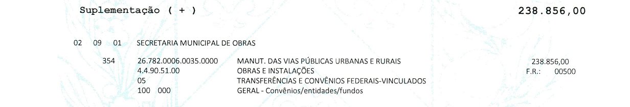 O Poder Executivo Municipal fica autorizado a abrir no orçamento - programa do exercício de 2023, nos termos do inciso II do art. 41 da Lei 4.320/64 Crédito Adicional Especial, no valor de R$ 238.856,00 (duzentos e trinta e oito mil oitocentos e cinqüenta e seis reais) para criação da seguinte