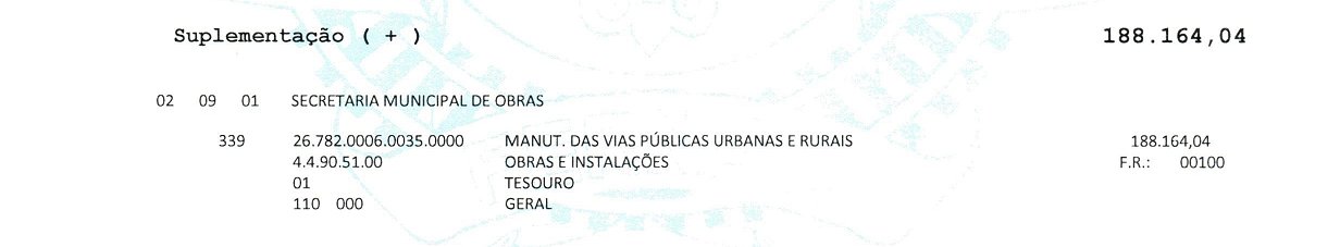 O Poder Executivo Municipal fica autorizado a abrir no orçamento - programa do exercício de 2023, nos termos do inciso I do art. 41 da Lei 4.320/64 Crédito Adicional Suplementar, no valor de R$ 188.164,04 (cento e oitenta e oito mil cento e sessenta e quatro reais e quatro centavos) para suplementação das seguintes dotações orçamentárias: