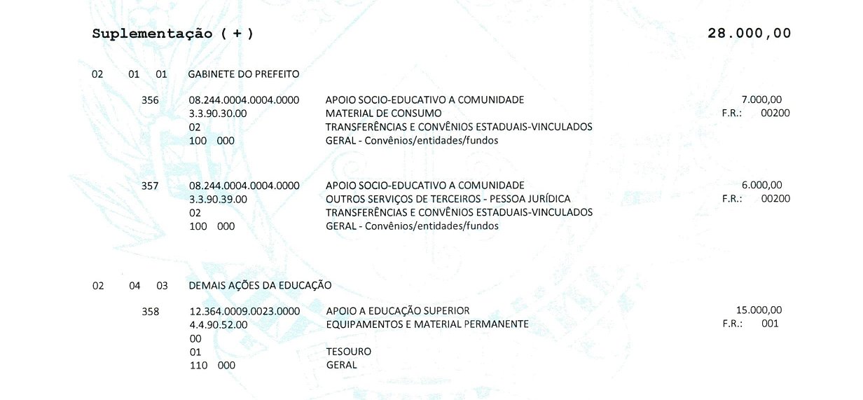 O Poder Executivo Municipal fica autorizado a abrir no orçamento - programa do exercício de 2023, nos termos do inciso II do art. 41 da Lei 4.320/64 Crédito Adicional Especial, no valor de R$ 28.000,00 (vinte e oito mil reais) para criação da seguinte dotação orçamentária: