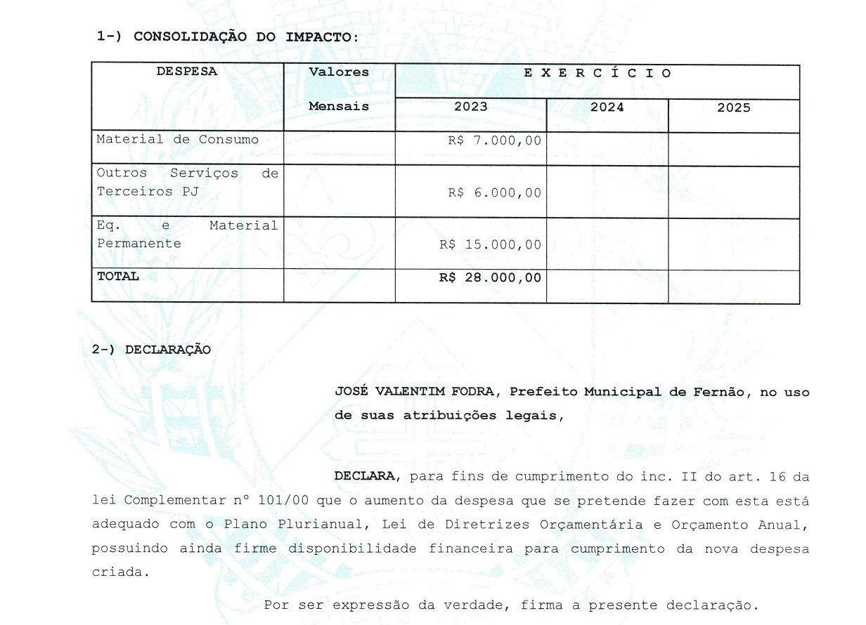JOSÉ VALENTIM FODRA, PREFEITO MUNICIPAL DE FERNÃO, ESTADO DE SÃO PAULO, NO USO DE SUAS ATRIBUIÇÕES LEGAIS,
