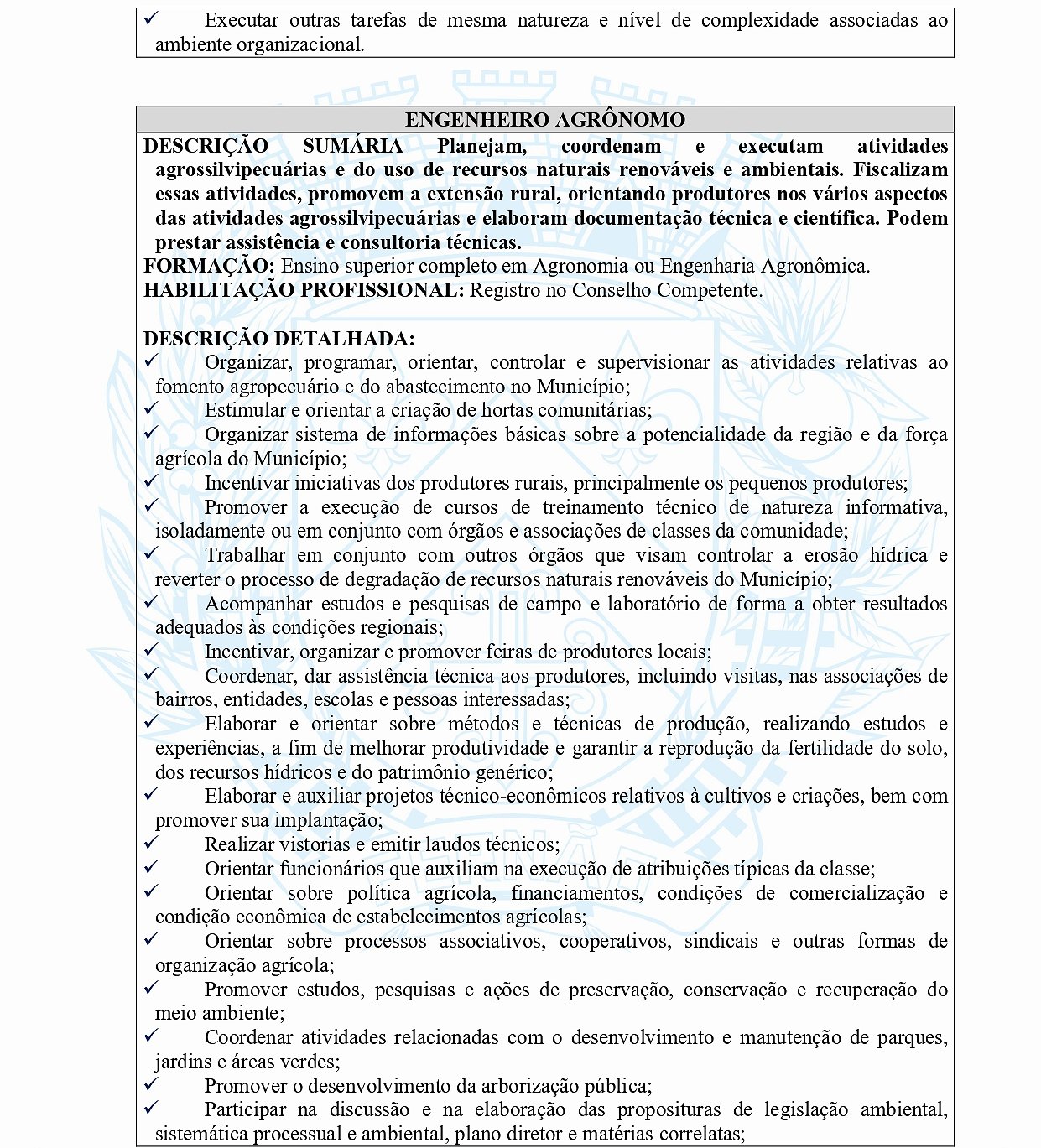 DISPÕE SOBRE OS REQUISITOS E ATRIBUIÇÕES DOS CARGOS DE PROVIMENTO EFETIVO DA PREFEITURA MUNICIPAL DE FERNÃO, ESTADO DE SÃOPAULO.