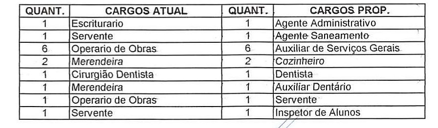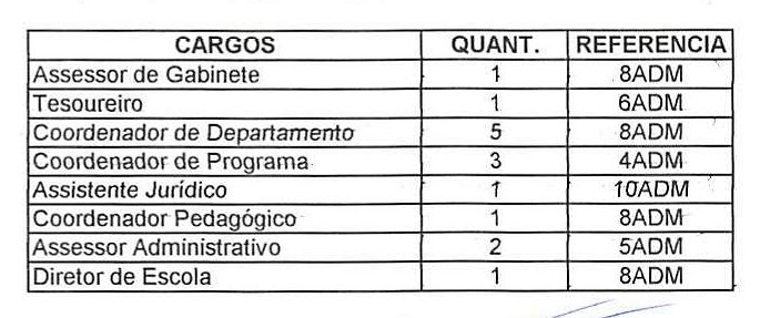 cargos em caráter efetivo, serão formados conforme a Anexo II, e dos cargos comissionados, constantes da Anexo III, que seguem em anexos, e passam afazer parte integrante desta Lei.