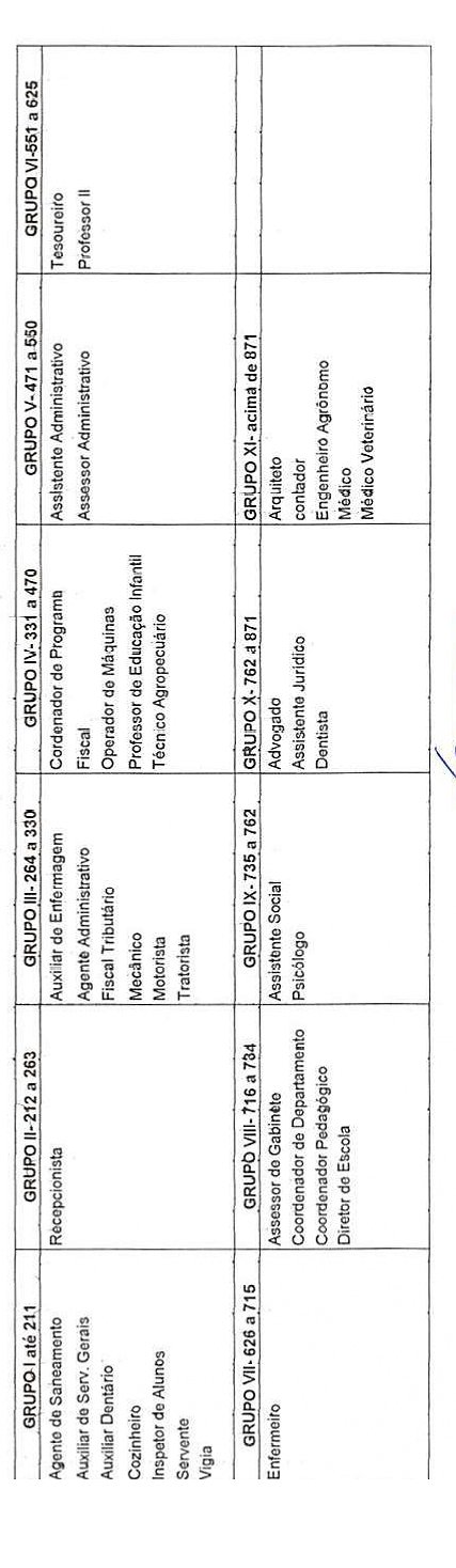 A escala de vencimentos dos cargos/empregos públicos constitui de 11 (doze) grupos enumerados em algarismos arábicos.