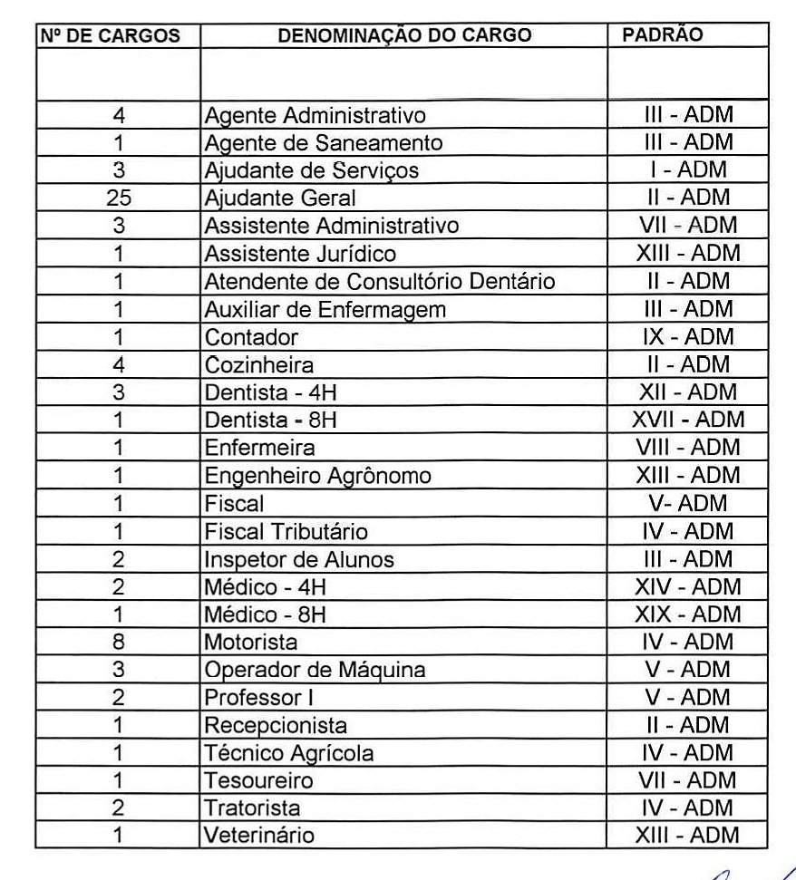 quadro de pessoal - o conjunto de cargos que integra a estrutura administrativa funcional da Prefeitura Municipal;