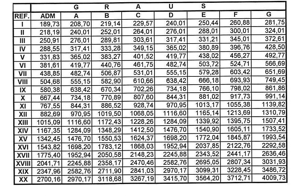 padrão - o conjunto de referência e nível indicativo do vencimento e funcionário;
